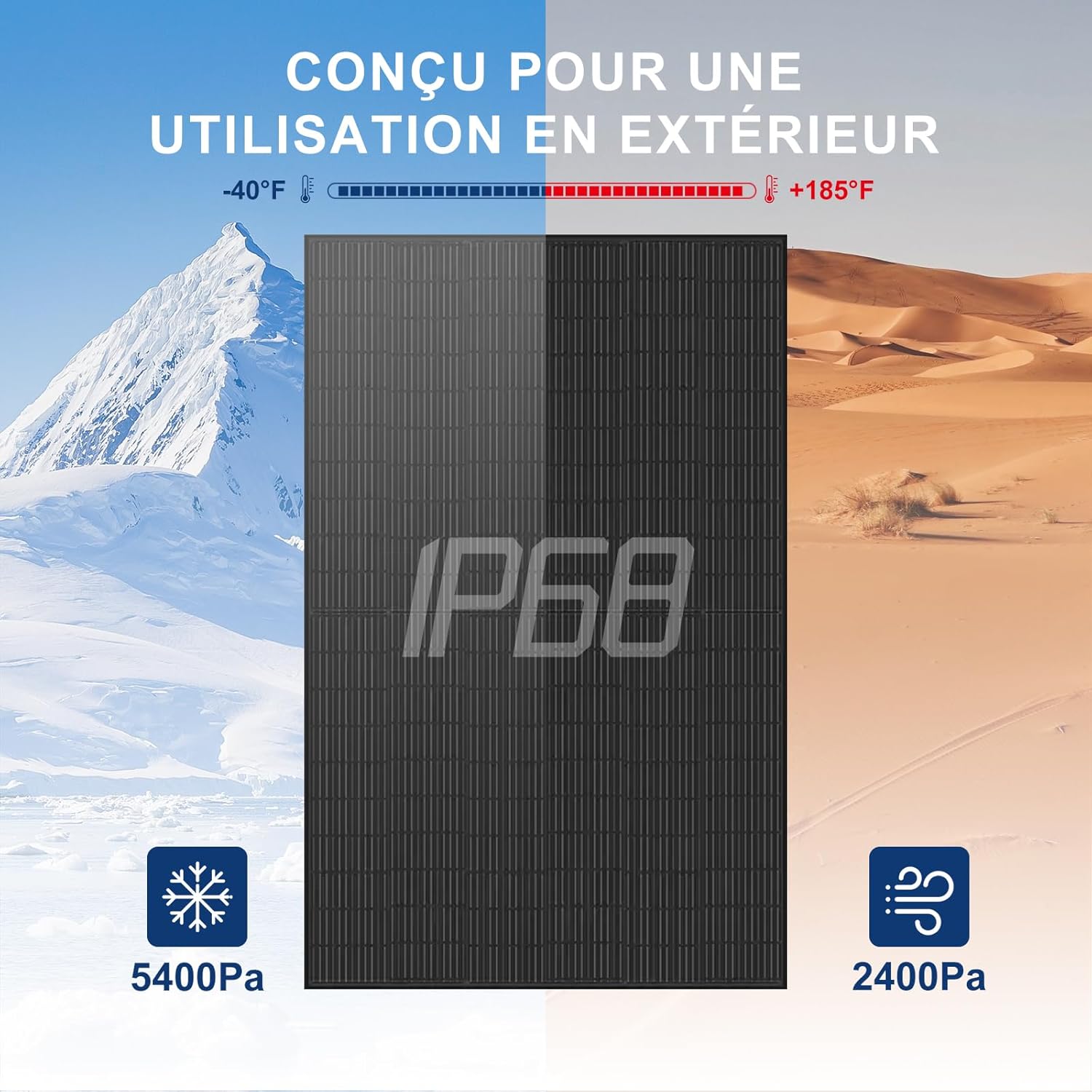 ✅ [Adaptés aux Conditions Extrêmes] Nos panneaux solaires de 430W sont conçus pour fonctionner efficacement dans des températures allant de -40°C à +85°C. Qu’il s’agisse de fortes chaleurs estivales ou de froids intenses, leur conception garantit une production d’énergie stable et continue, parfaite pour toutes les régions et tous types d’installations.