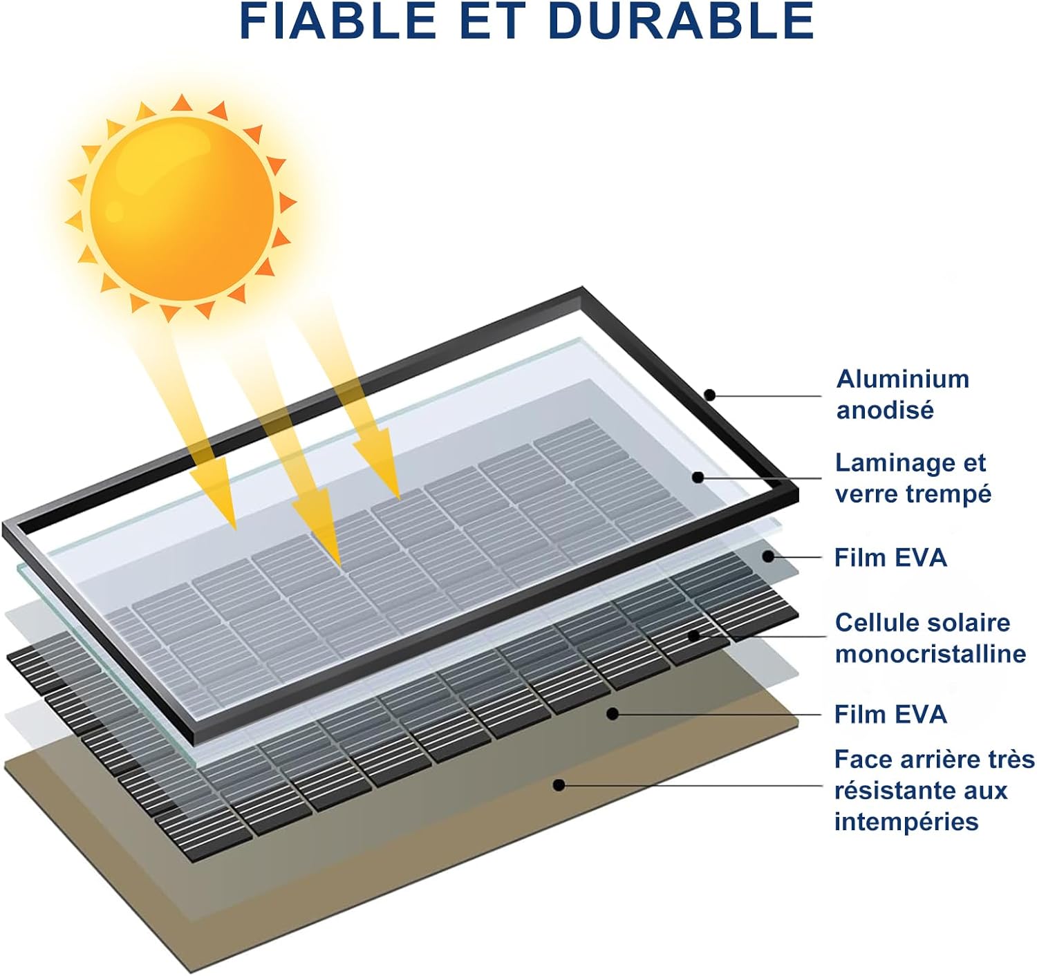 ✅ [Résistance et Étanchéité] Conçus avec des cadres en aluminium robuste et anticorrosion, ces panneaux garantissent une longévité exceptionnelle. Certifiés IP68, ils sont protégés contre la poussière et l’infiltration d’eau, leur assurant une grande fiabilité, même en conditions difficiles. Leur durée de vie peut atteindre 30 ans, vous offrant ainsi un investissement durable.